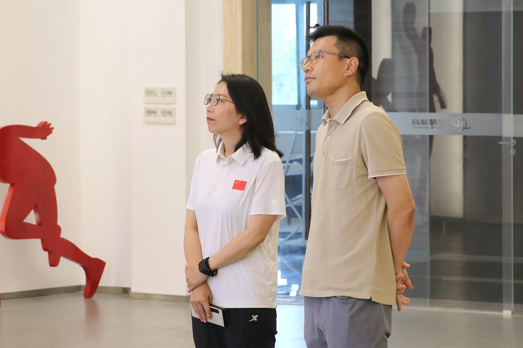 8月15日下午,參加中國(guó)田徑協(xié)會(huì)第十屆標(biāo)準(zhǔn)與認(rèn)證委員會(huì)2024年年中工作會(huì)的領(lǐng)導(dǎo)和委員來(lái)到金陵體育參觀交流,公司總經(jīng)理李劍剛和副總經(jīng)理趙育龍全程陪同。期間,一行人參觀了公司的數(shù)字化展廳、實(shí)物展廳、智能化車間、檢測(cè)中心和光電部田徑器材展示區(qū),總經(jīng)理李劍剛介紹了公司近年來(lái)取得的工作成果和未來(lái)的發(fā)展方向。各位領(lǐng)導(dǎo)和委員對(duì)于金陵體育所做的工作給與了充分的肯定。